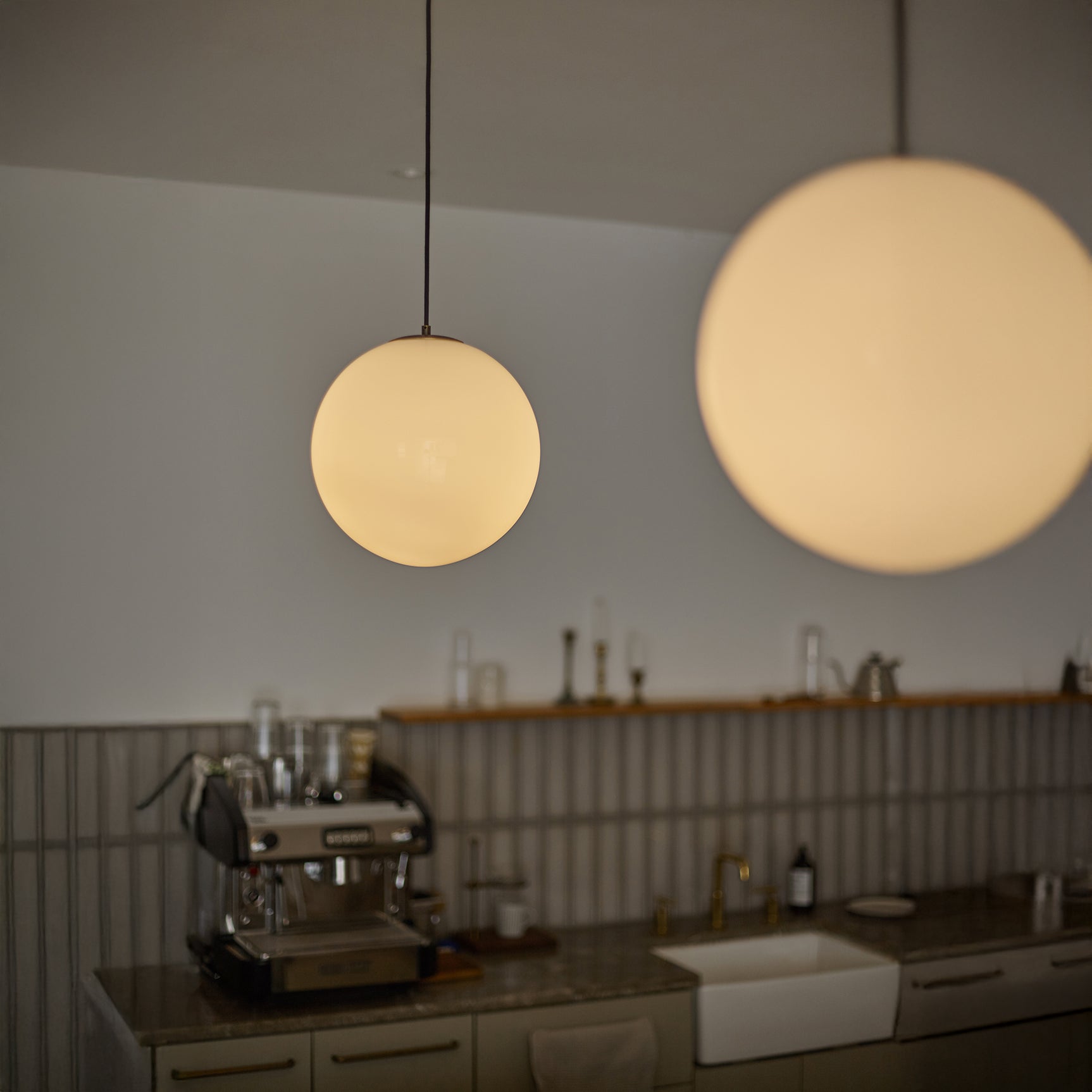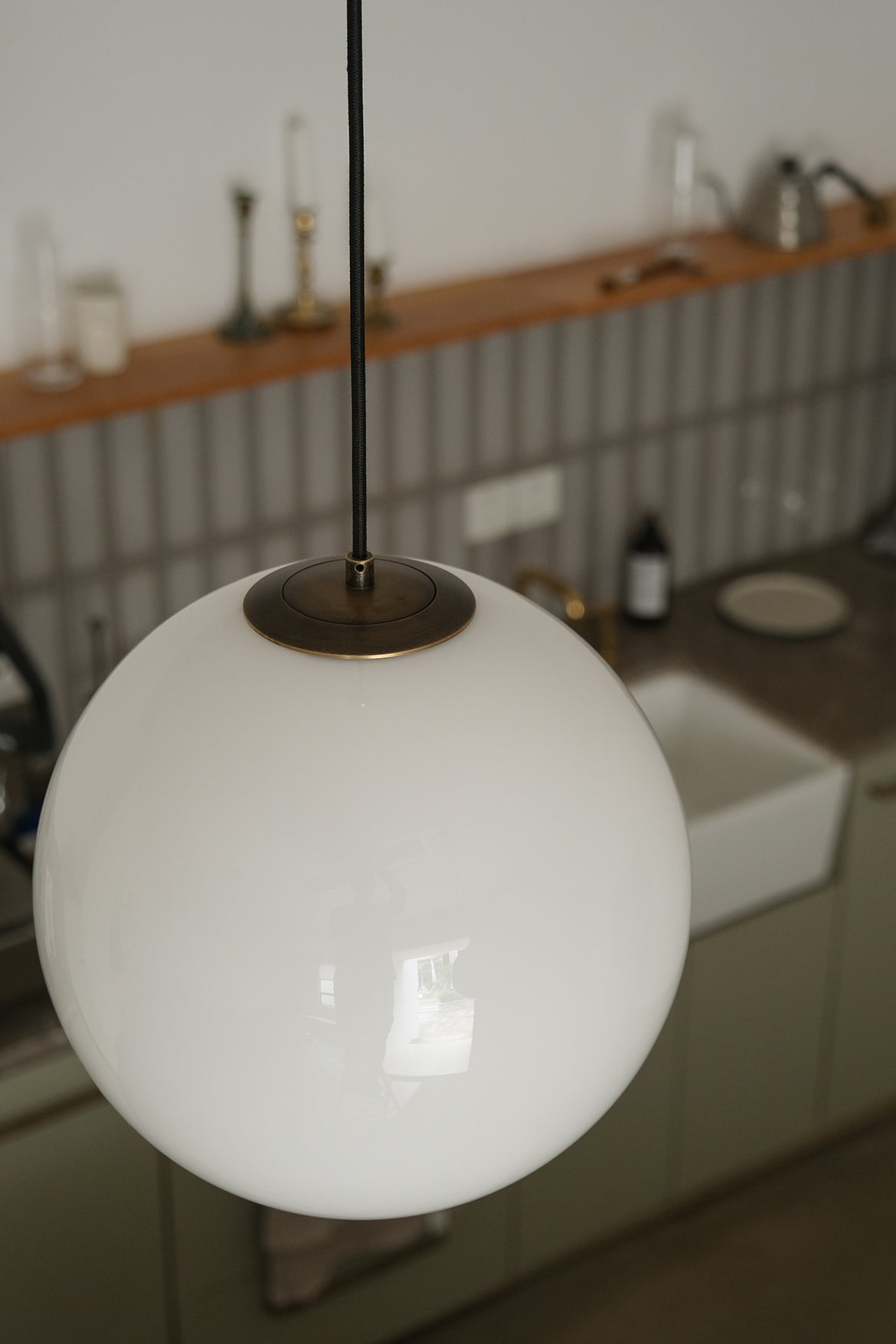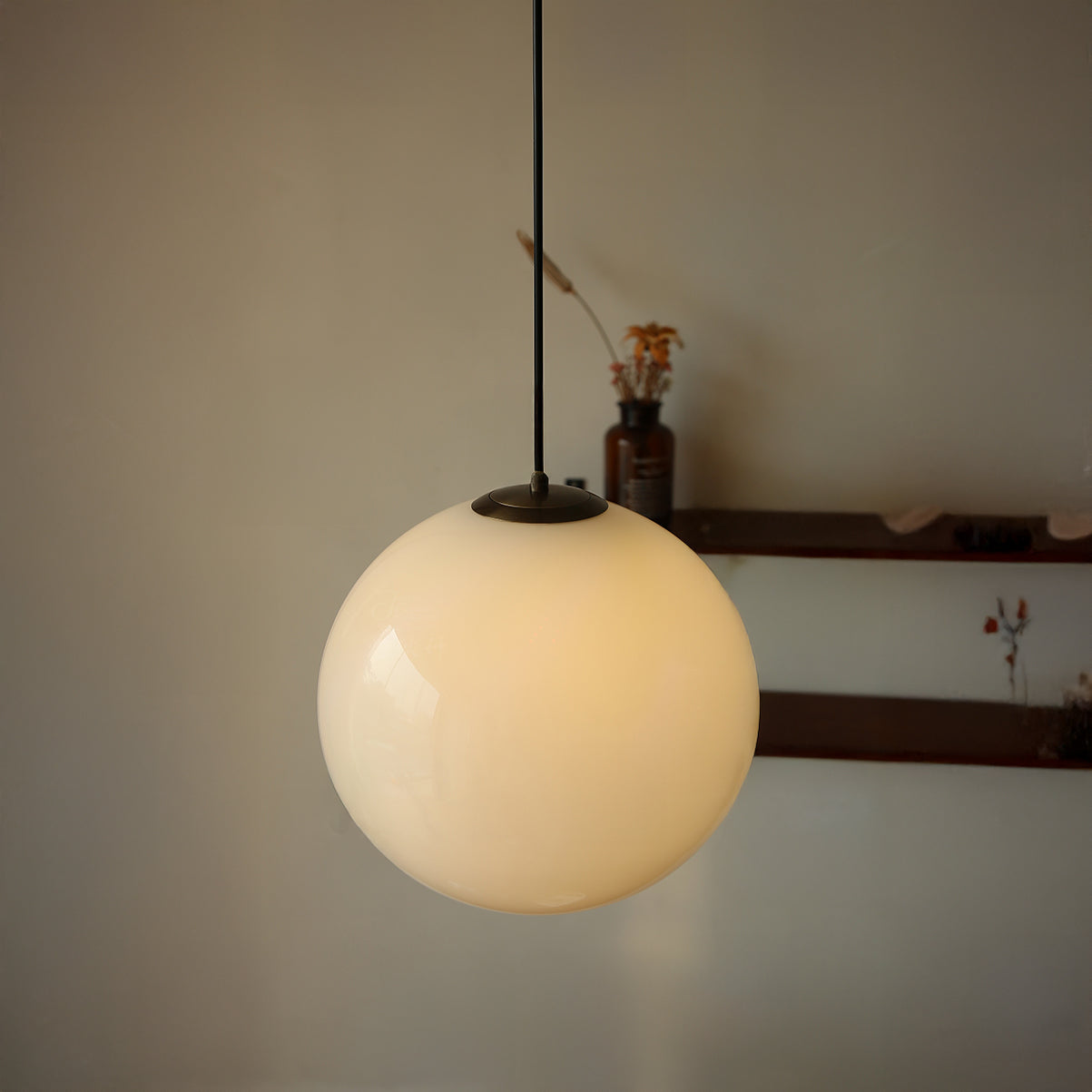 A study in quiet elegance, the Opaline pendant light brings warmth and refinement to any space. Its smooth, milky glass globe diffuses light with a gentle glow, creating a serene atmosphere that complements both modern and classic interiors. Opaline is ideal above dining tables, kitchen islands, or in entryways—wherever soft illumination and timeless form are desired.