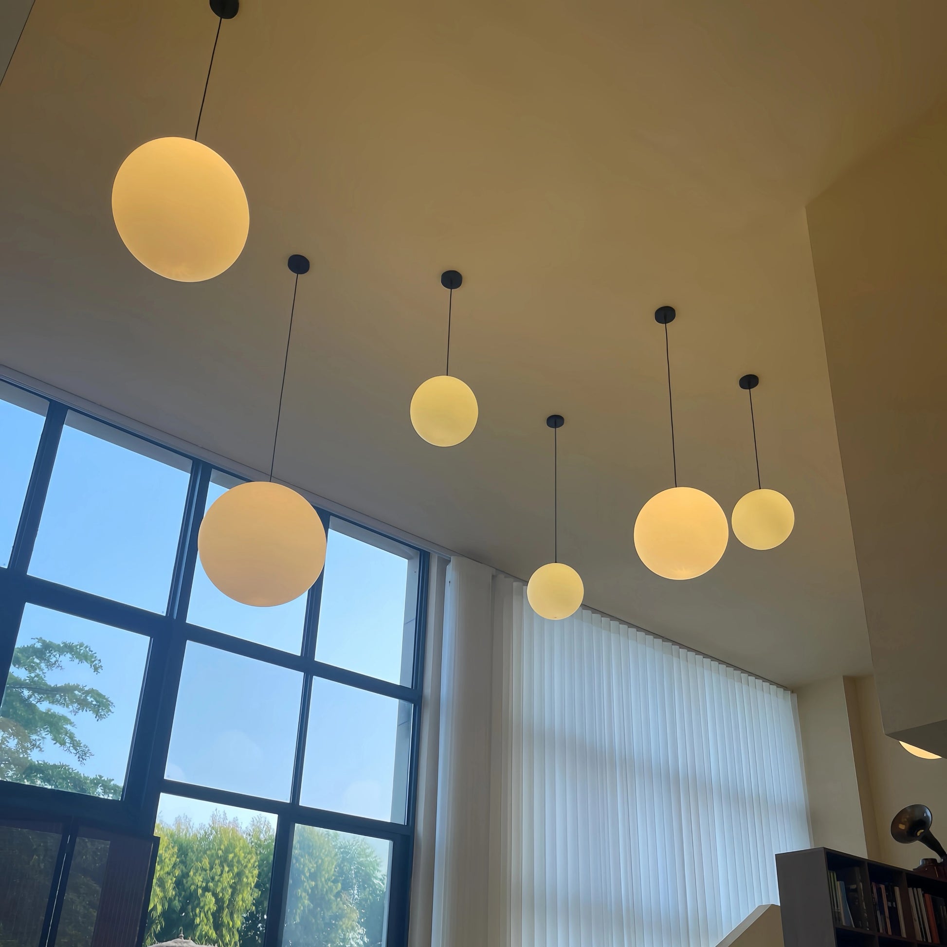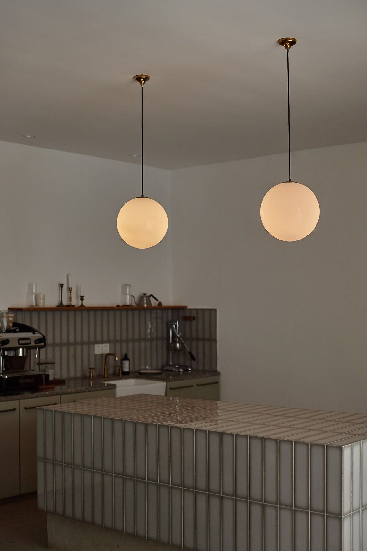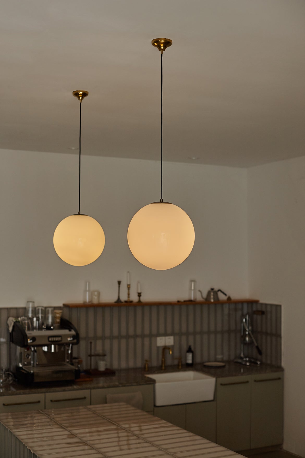 A study in quiet elegance, the Opaline pendant light brings warmth and refinement to any space. Its smooth, milky glass globe diffuses light with a gentle glow, creating a serene atmosphere that complements both modern and classic interiors. Opaline is ideal above dining tables, kitchen islands, or in entryways—wherever soft illumination and timeless form are desired.