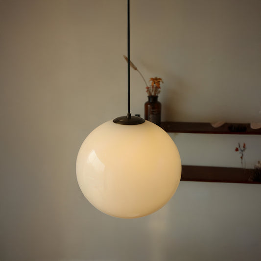 Opaline Milky Glass Brass Rod Mid-century Ceiling Light