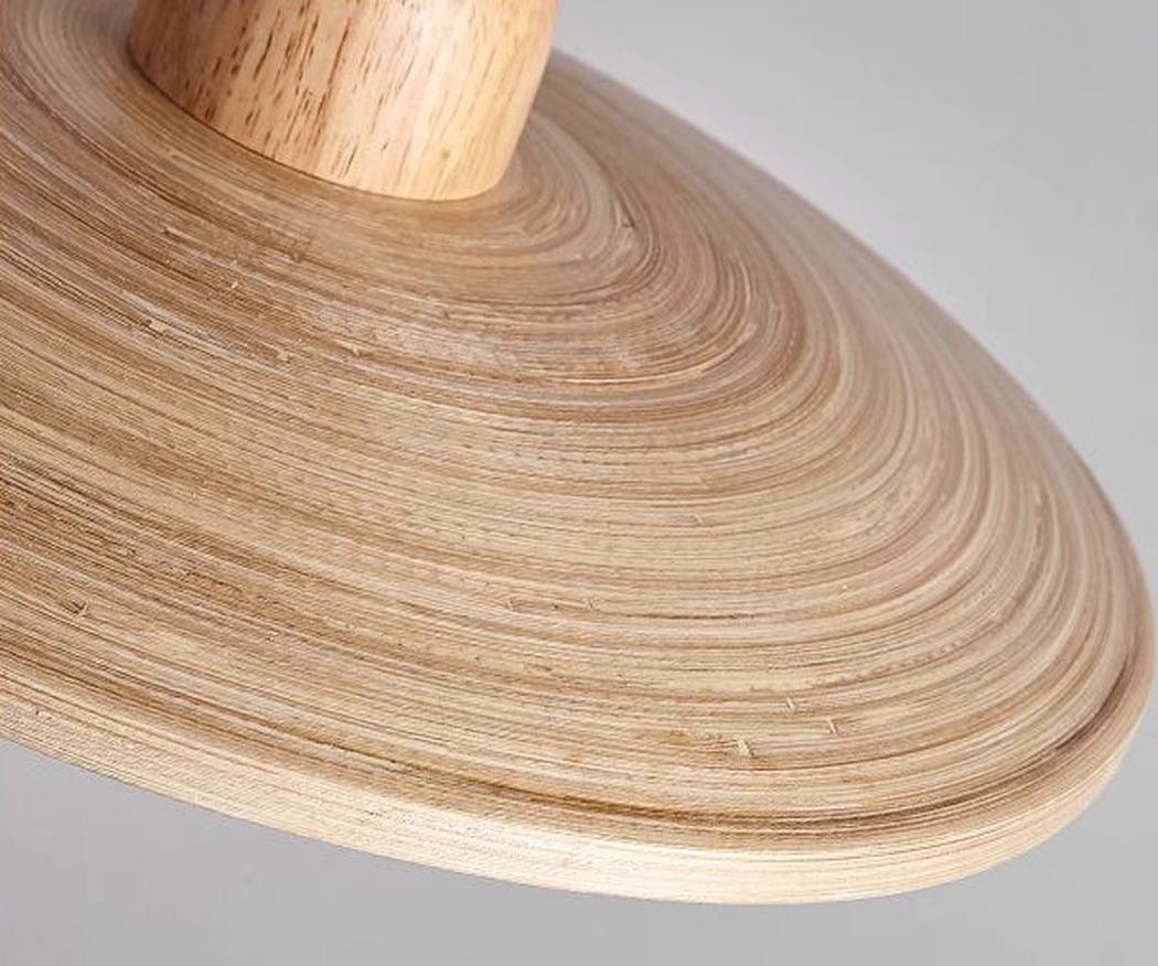 Rubber wood top bulb fitting. Bamboo plate light shade. Fabric braided cord White frosted glass shade |