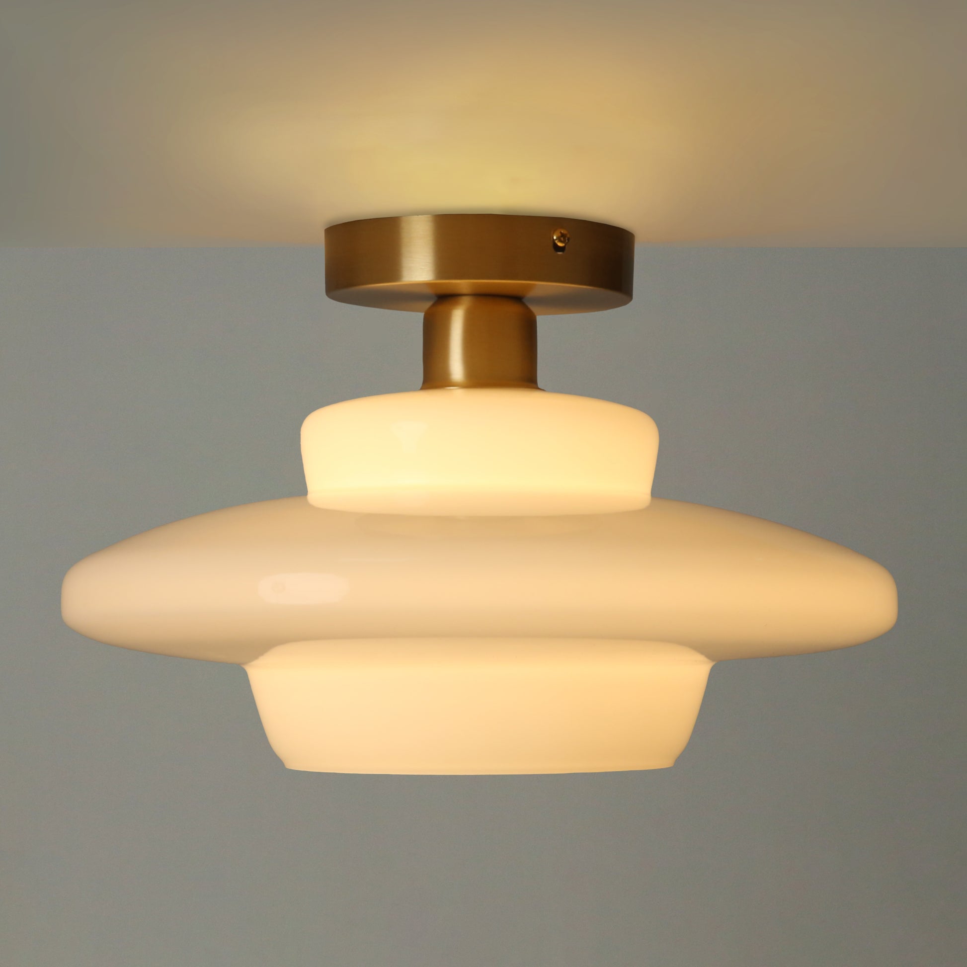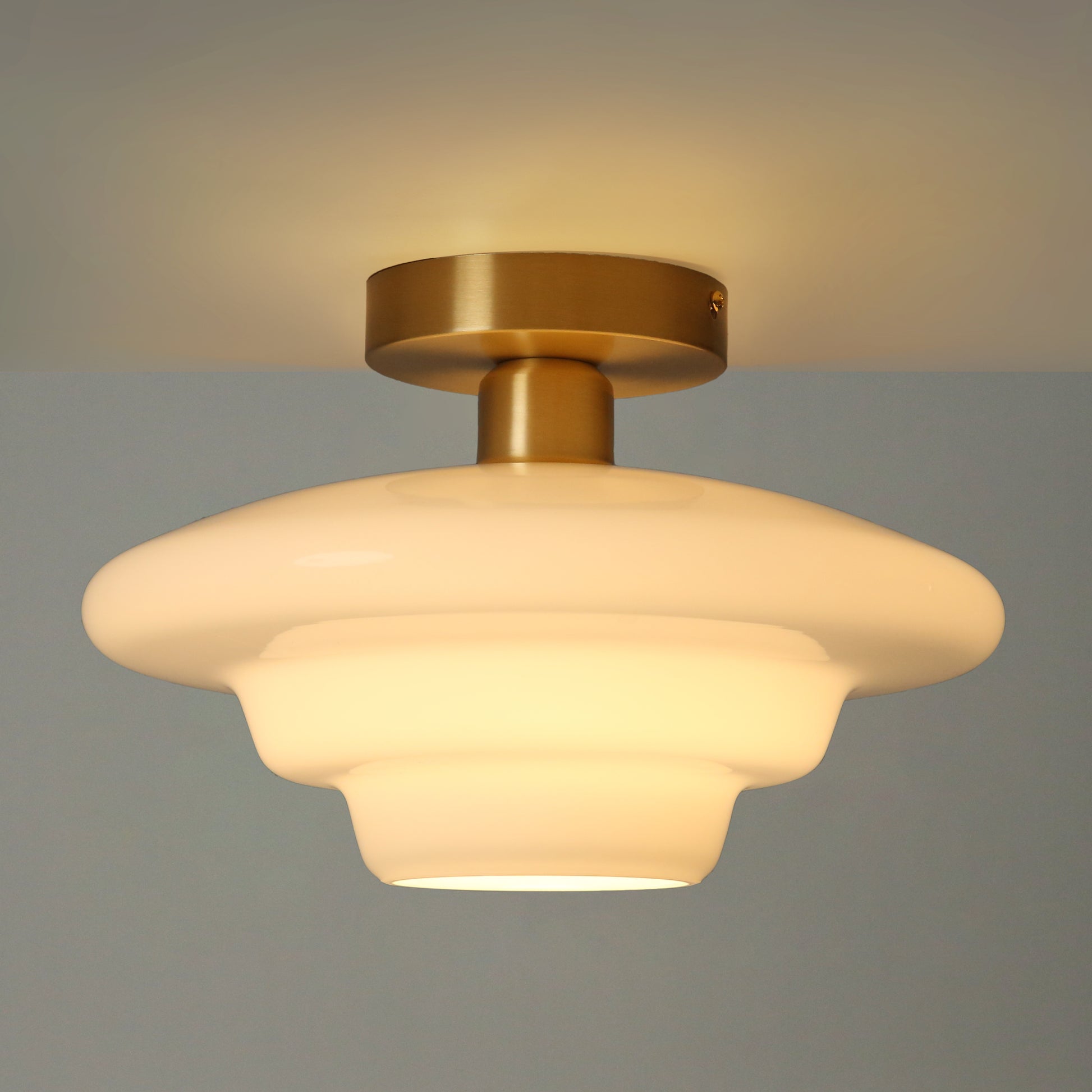 Introducing our new Art Deco Ceiling Lights , The Miller – elegant, classy, and perfect for maintaining an updated heritage style for low ceiling height places. With milky white glass shades, a warm glow, and three shapes to mix and match, they're sure to become a stunning centrepiece in any room.