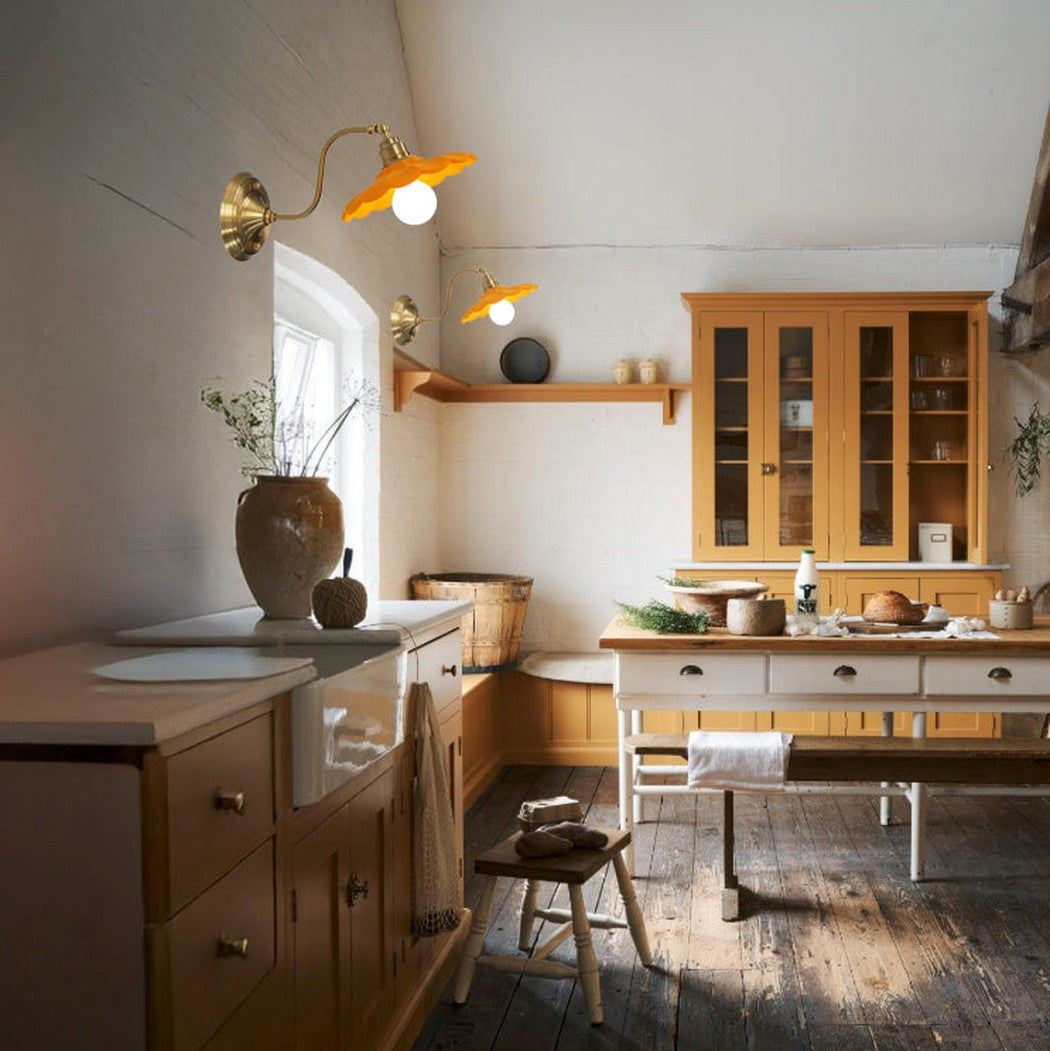 Illuminate your space with the charming Sundance Wall Light. Featuring a delicately scalloped porcelain shade in a vibrant sunburst yellow, this light captures the essence of warmth and whimsy. The sleek brass arm and base add a touch of timeless elegance, perfectly balancing modern and vintage aesthetics.