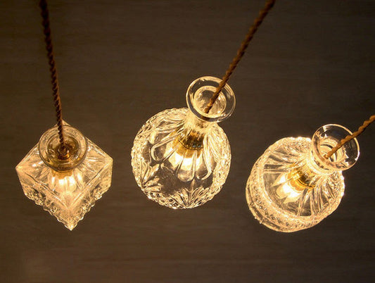 Cut Glass Bottle Shade Brass Fitting Art Deco Pendant Light