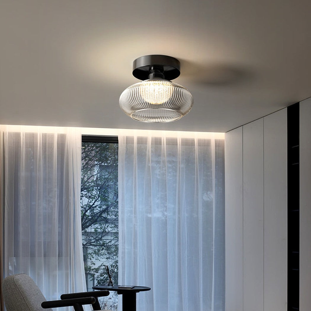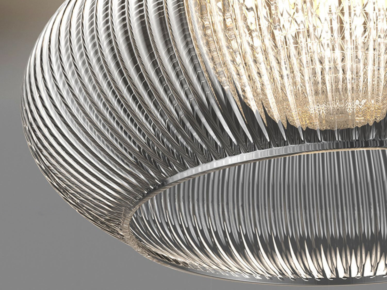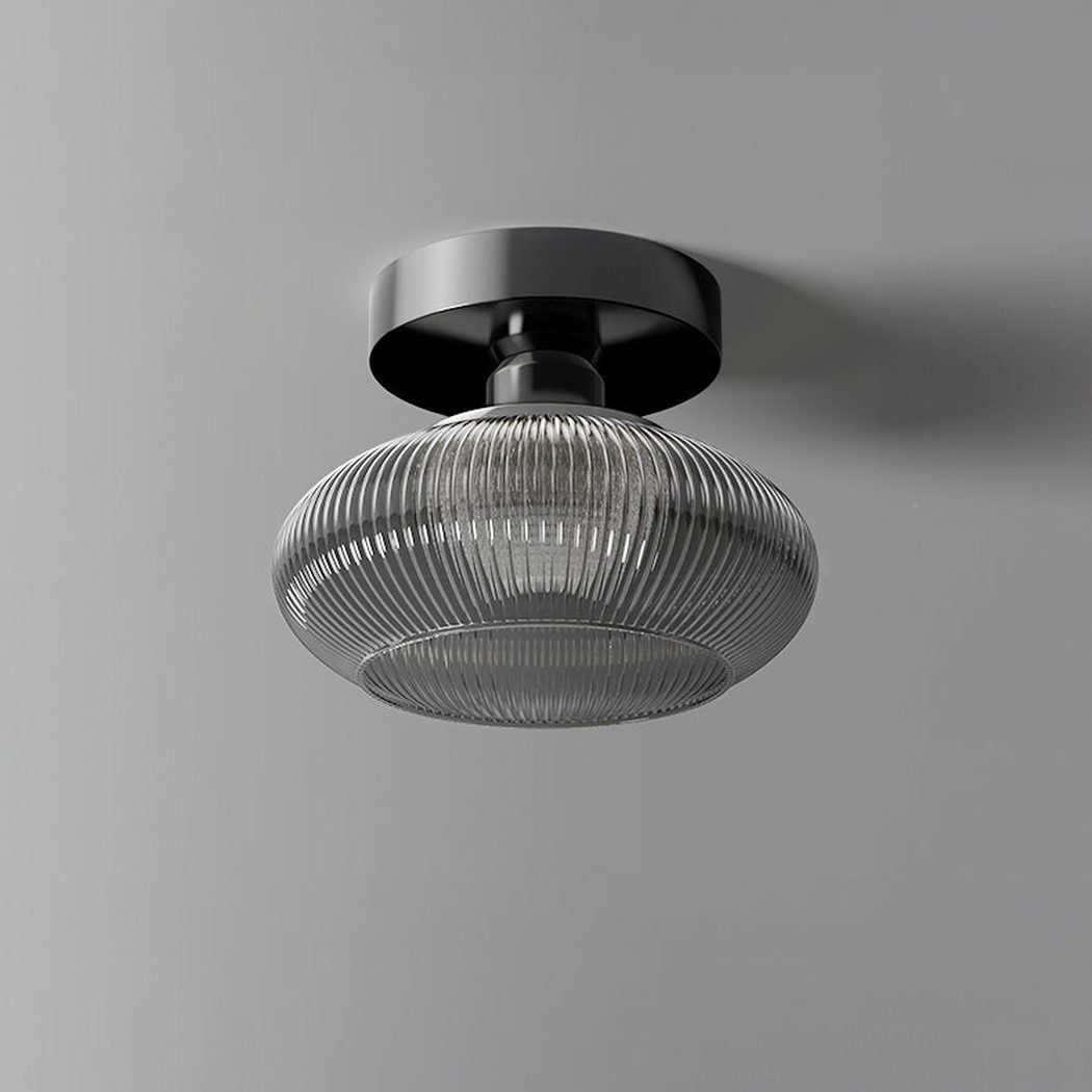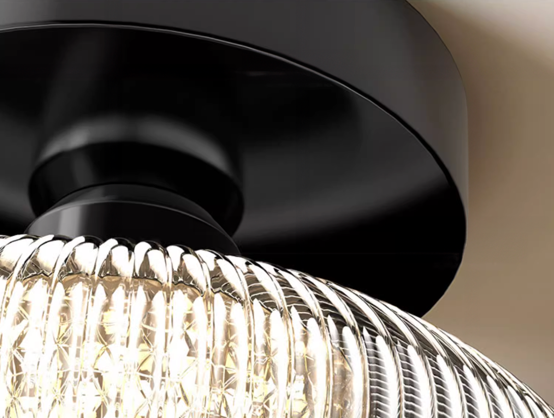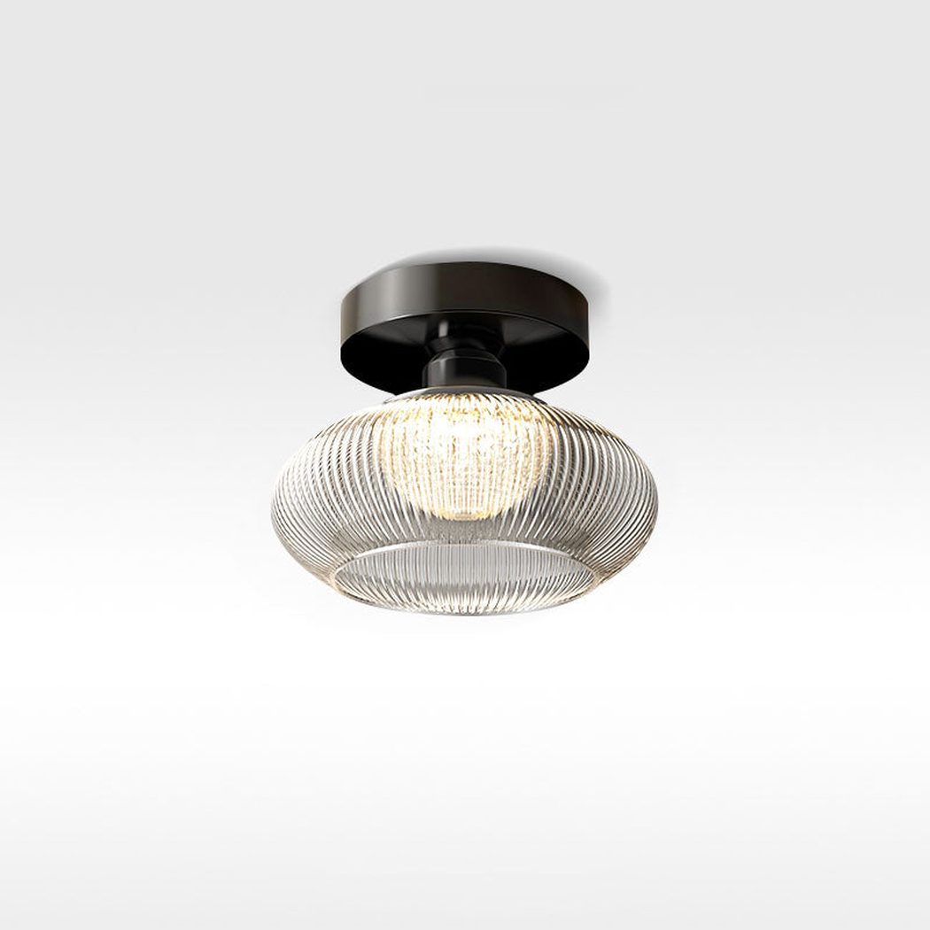 This elegant fixed ceiling light is an exquisite addition to your home lighting. Inspired by retro art deco design, it exudes luxury and minimalism. The textured ribbed glass shade provides a beautiful warm glow, adjustable to your desired color temperature with LED light. Enjoy a touch of sophistication in any room.