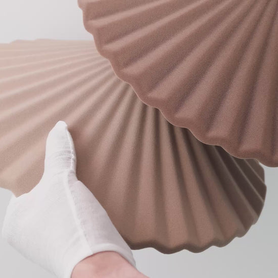Delicately handcrafted porcelain with a velvet finish, the fluted pendant light has a unique velvet-like texture that is gentle to touch, with a light milk coffee color and dark brown chocolate colour that adds a touch of charm and earthiness to any interior. A versatile addition to suit a wide range of interiors, this light is sure to add warmth and lighten up any room - on or off.