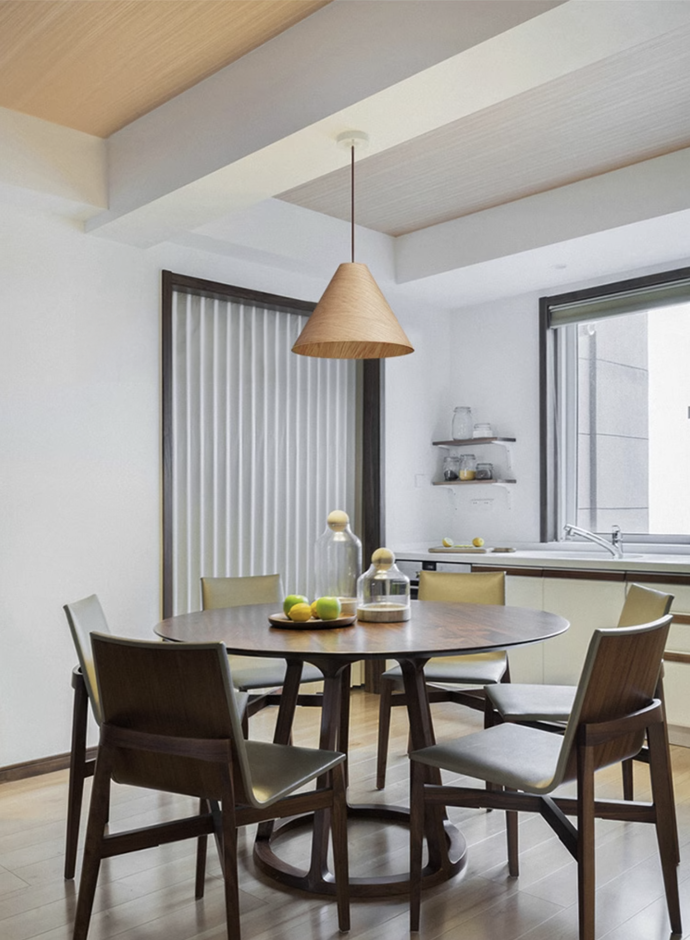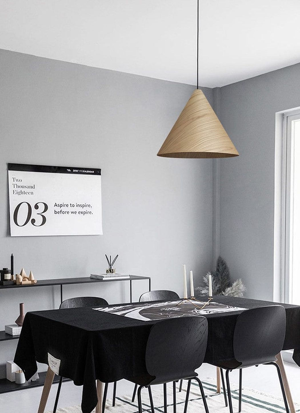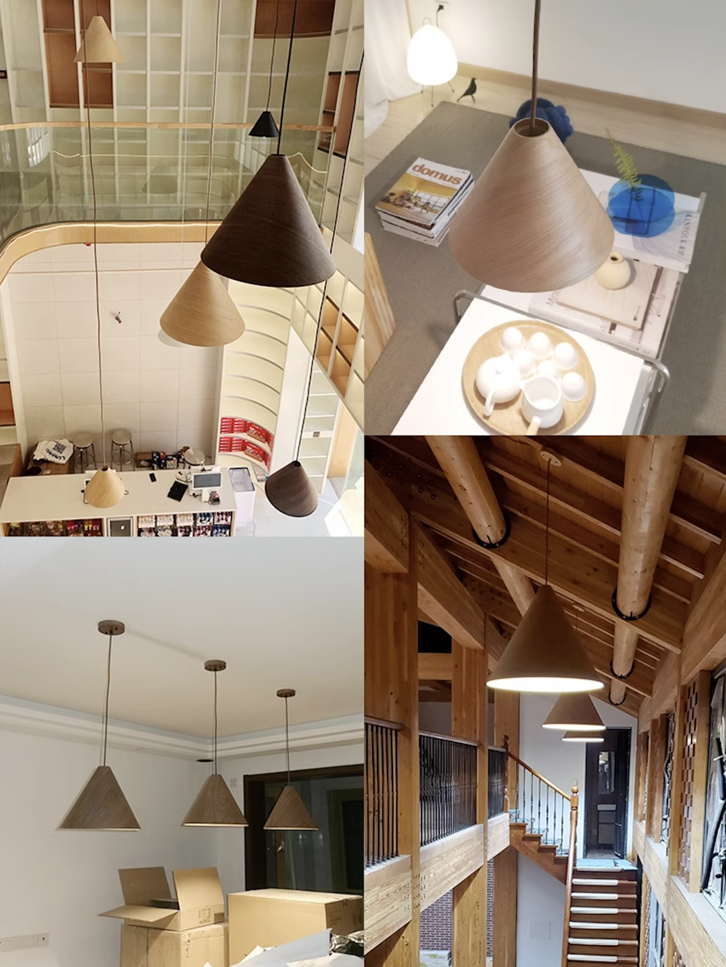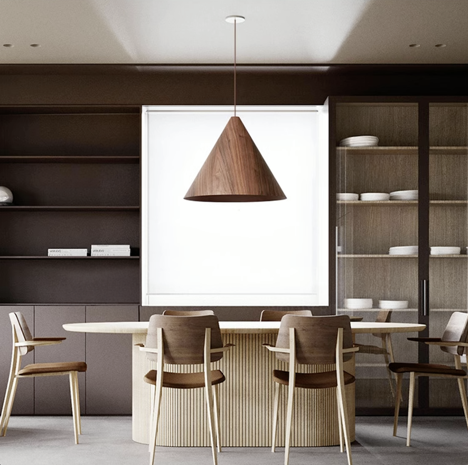 This contemporary Geppetto Wooden Cone Pendant Light seamlessly combines Scandi and Japandi designs, generating a comforting ambiance while diffusing consistent illumination into the space. Featuring a classic wooden shade with pronounced wood grain, it is well-suited for modern interiors and tranquil living areas.