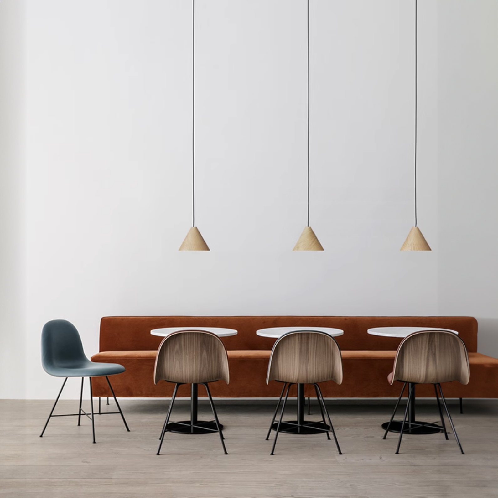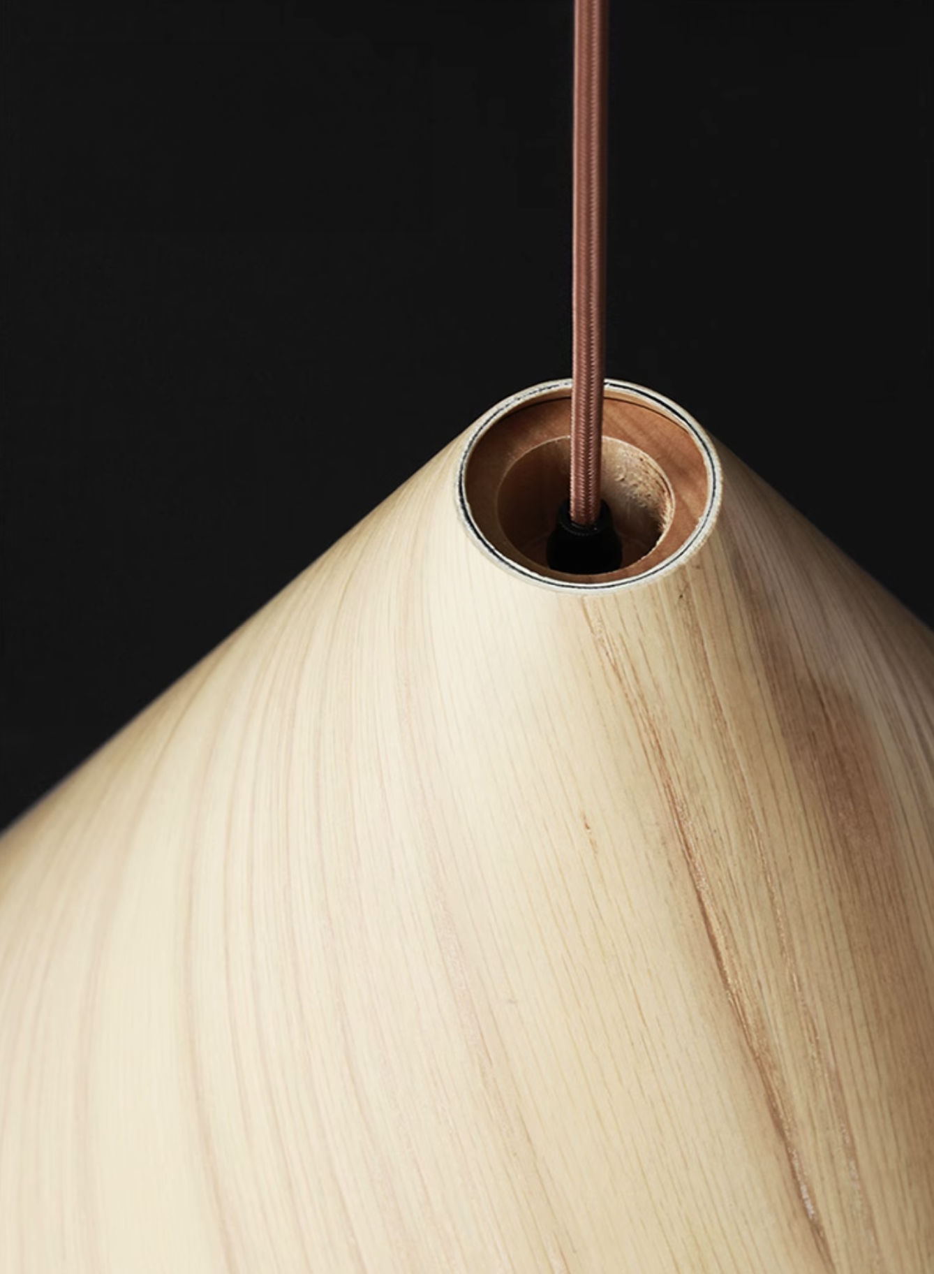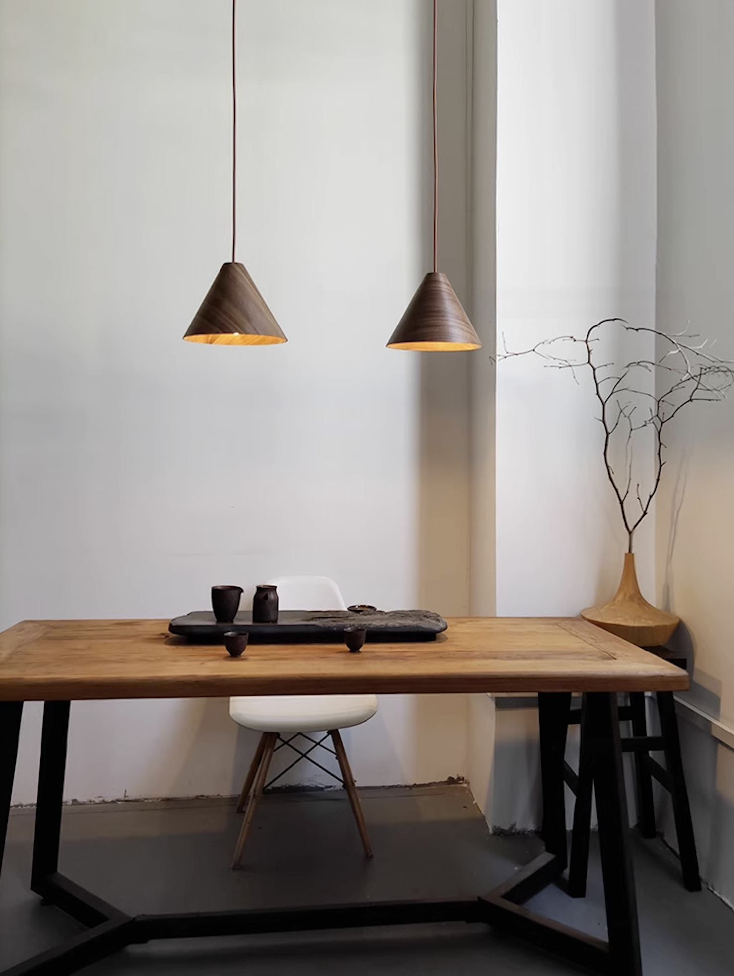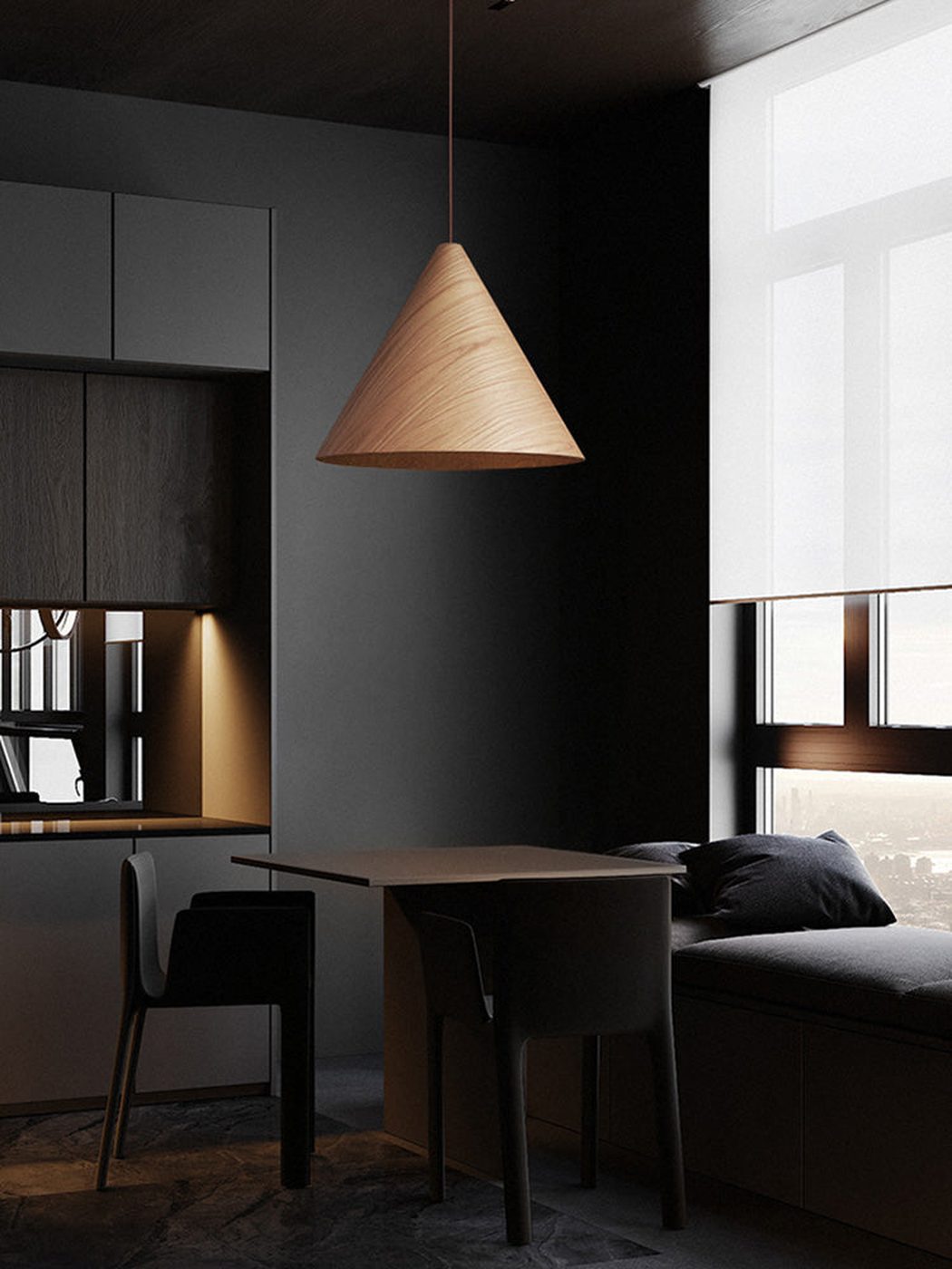 This contemporary Geppetto Wooden Cone Pendant Light seamlessly combines Scandi and Japandi designs, generating a comforting ambiance while diffusing consistent illumination into the space. Featuring a classic wooden shade with pronounced wood grain, it is well-suited for modern interiors and tranquil living areas.