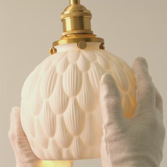 This beautifully crafted Artichoke Ceramic Porcelain Shade Pendant Light boasts a soft and elegant porcelain shade, hand made and kiln hardened for durability. Its high quality pure brass fittings, UL and CE certifications ensure safety and a touch of sophistication for any living space. Versatile for use in the kitchen, bedroom or living areas.
