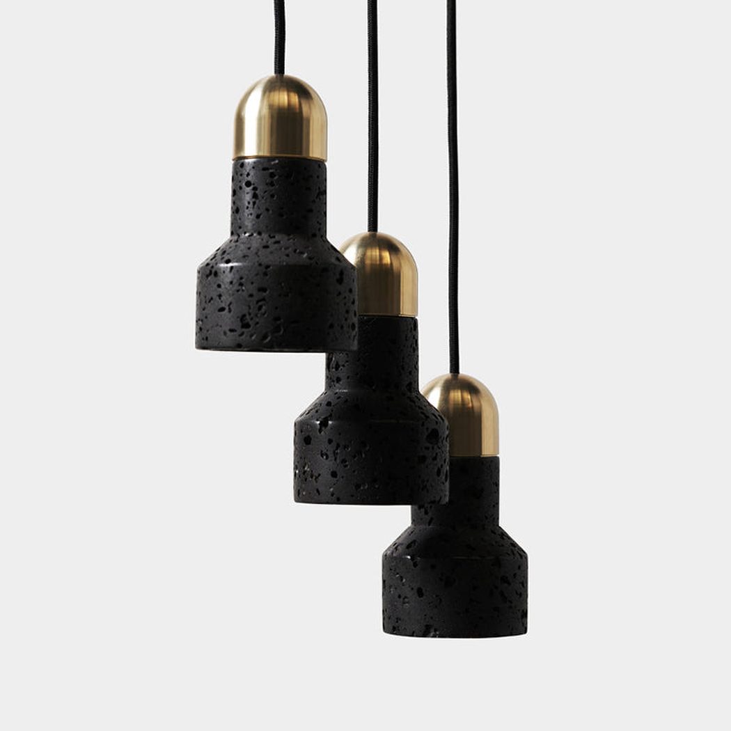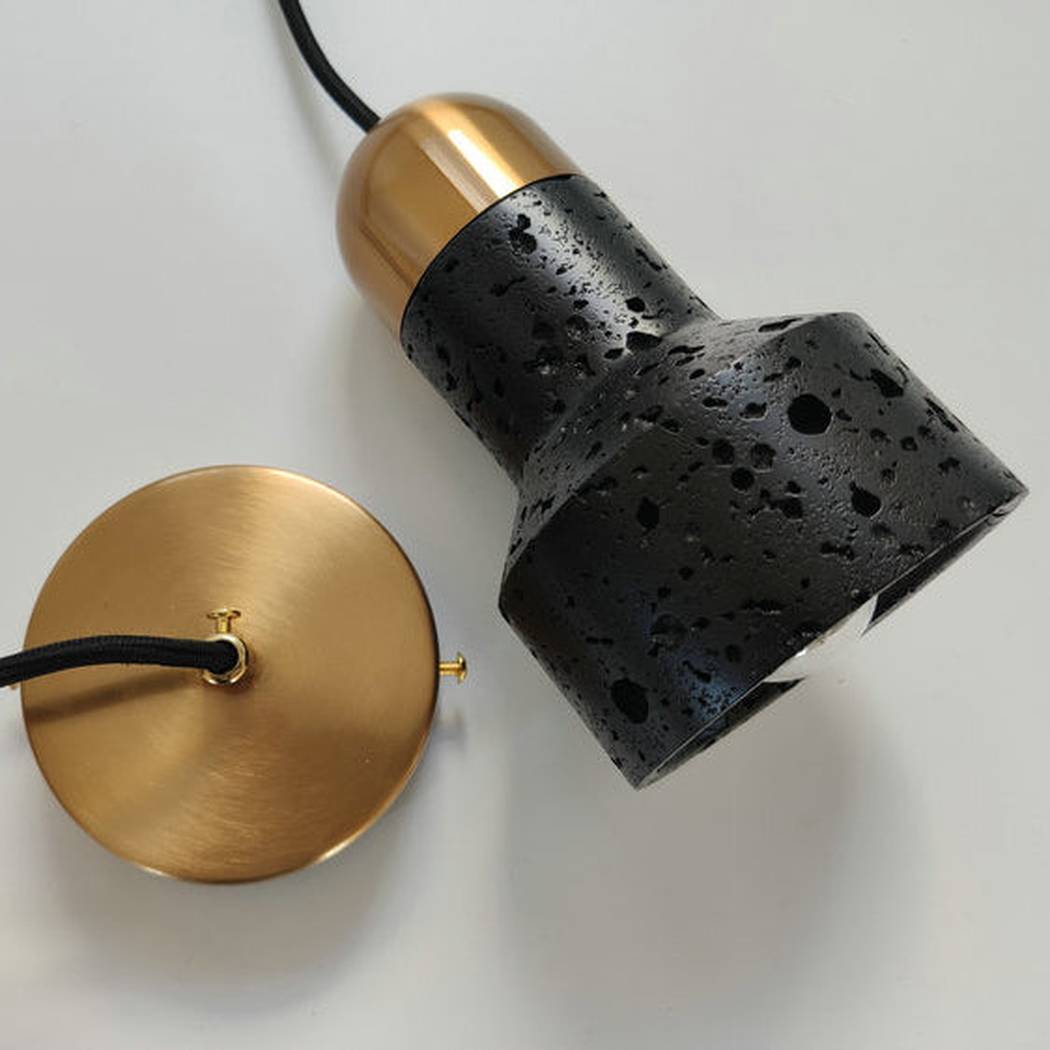 Black Lava F Stone Minimalist Line Pendant Light