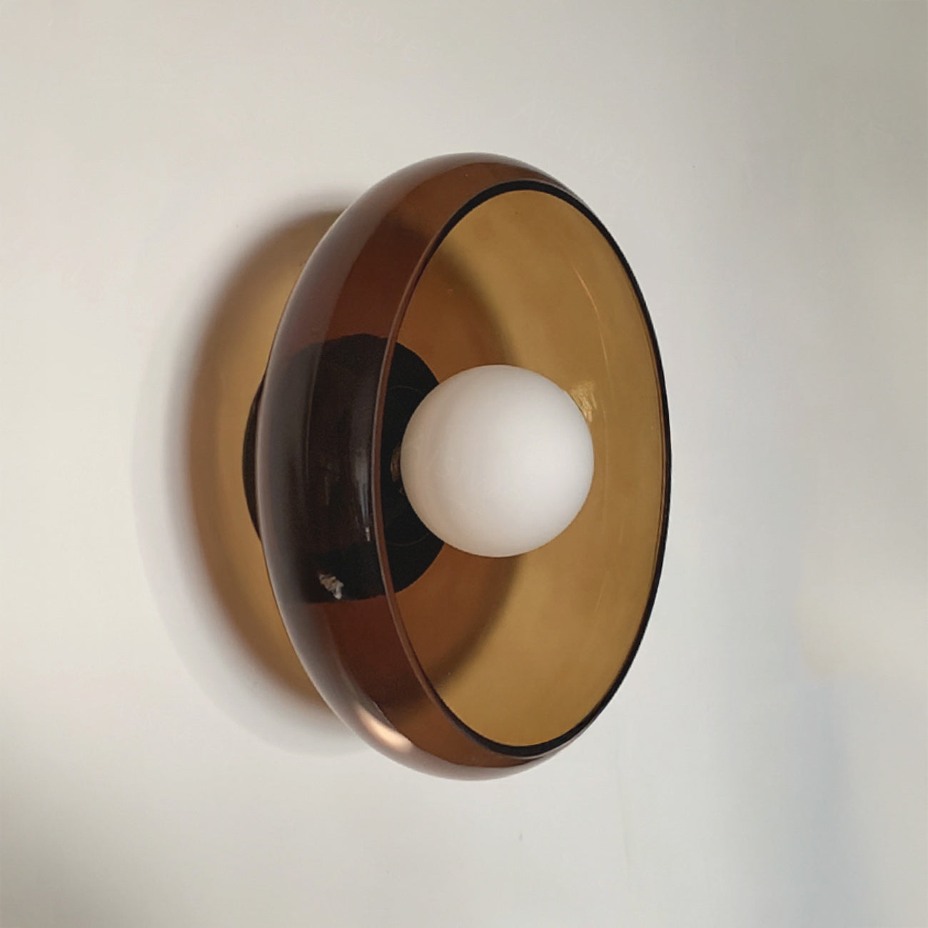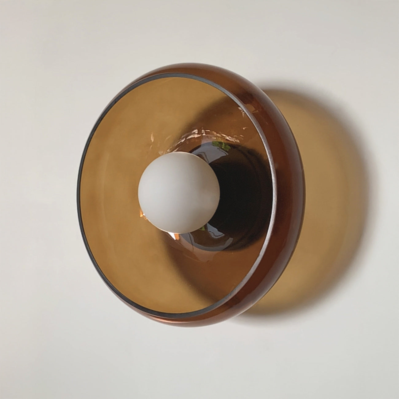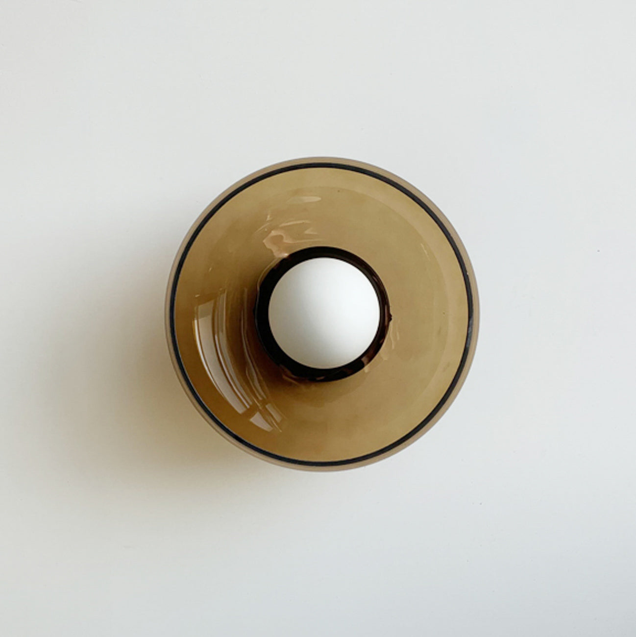 The Eclipse light blends mid-century modern elegance with contemporary versatility. Featuring a warm amber glass shade and soft white globe, it casts a diffused, atmospheric glow—reminiscent of a solar eclipse. Designed to function as both a wall sconce and ceiling light, Eclipse is perfect for bedrooms, living rooms, hallways, and more. Its clean, sculptural form complements retro, minimalist, and modern interiors alike. A standout choice for those seeking stylish amber glass lighting with a dual-purpose design.
