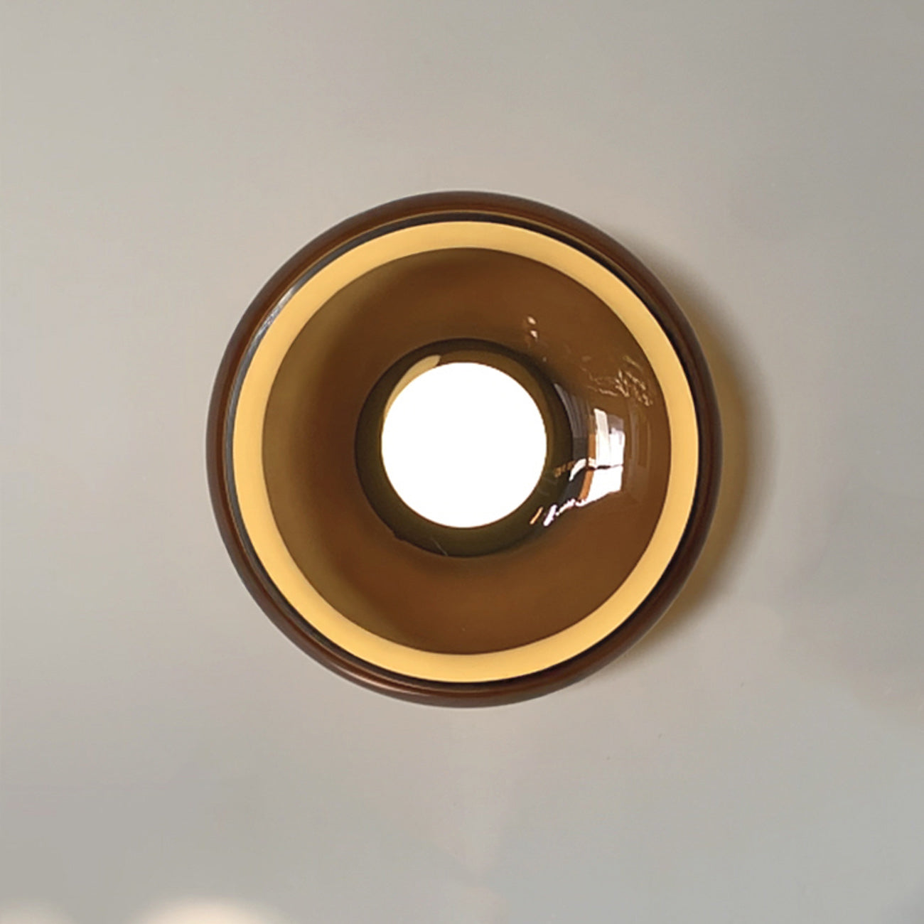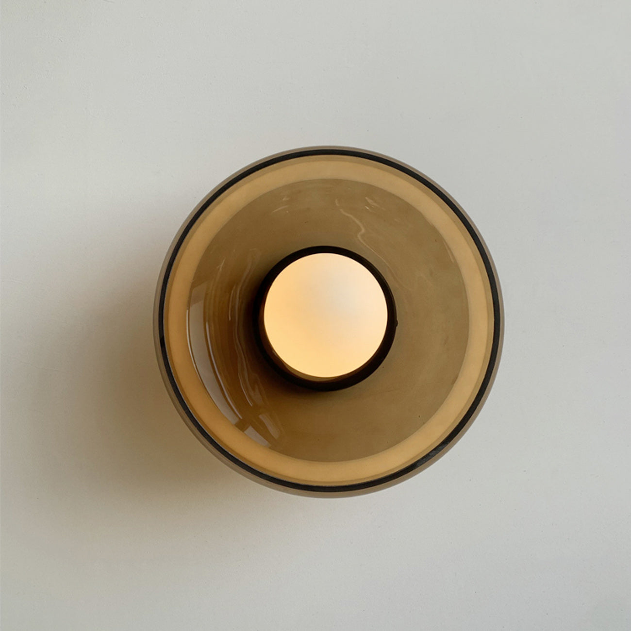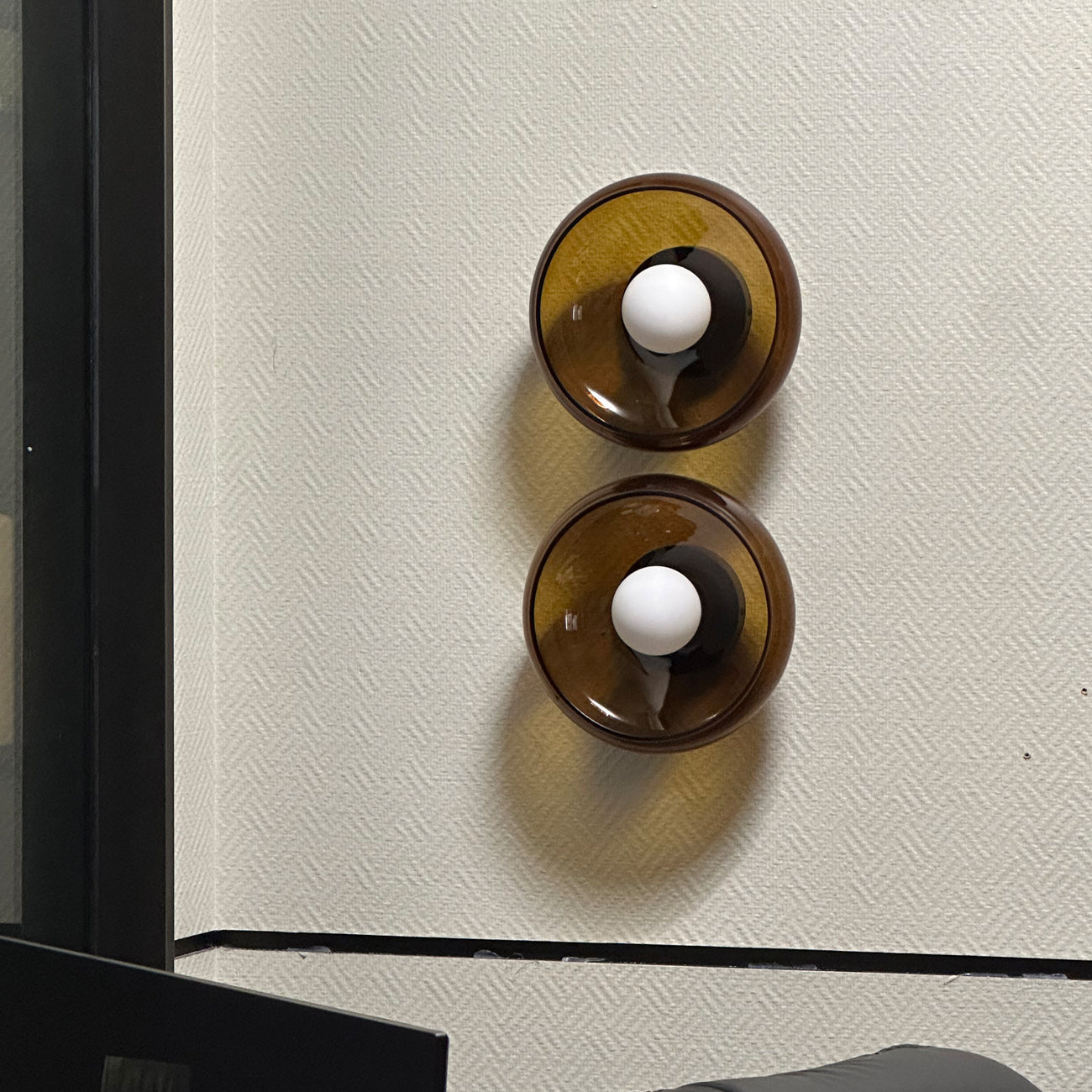 The Eclipse light blends mid-century modern elegance with contemporary versatility. Featuring a warm amber glass shade and soft white globe, it casts a diffused, atmospheric glow—reminiscent of a solar eclipse. Designed to function as both a wall sconce and ceiling light, Eclipse is perfect for bedrooms, living rooms, hallways, and more. Its clean, sculptural form complements retro, minimalist, and modern interiors alike. A standout choice for those seeking stylish amber glass lighting with a dual-purpose design.