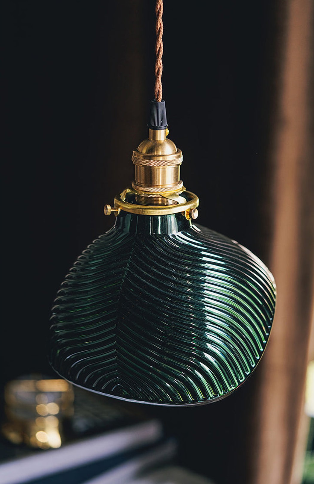 Emerald Green Fluted Shell Glass Art Deco Pendant Light