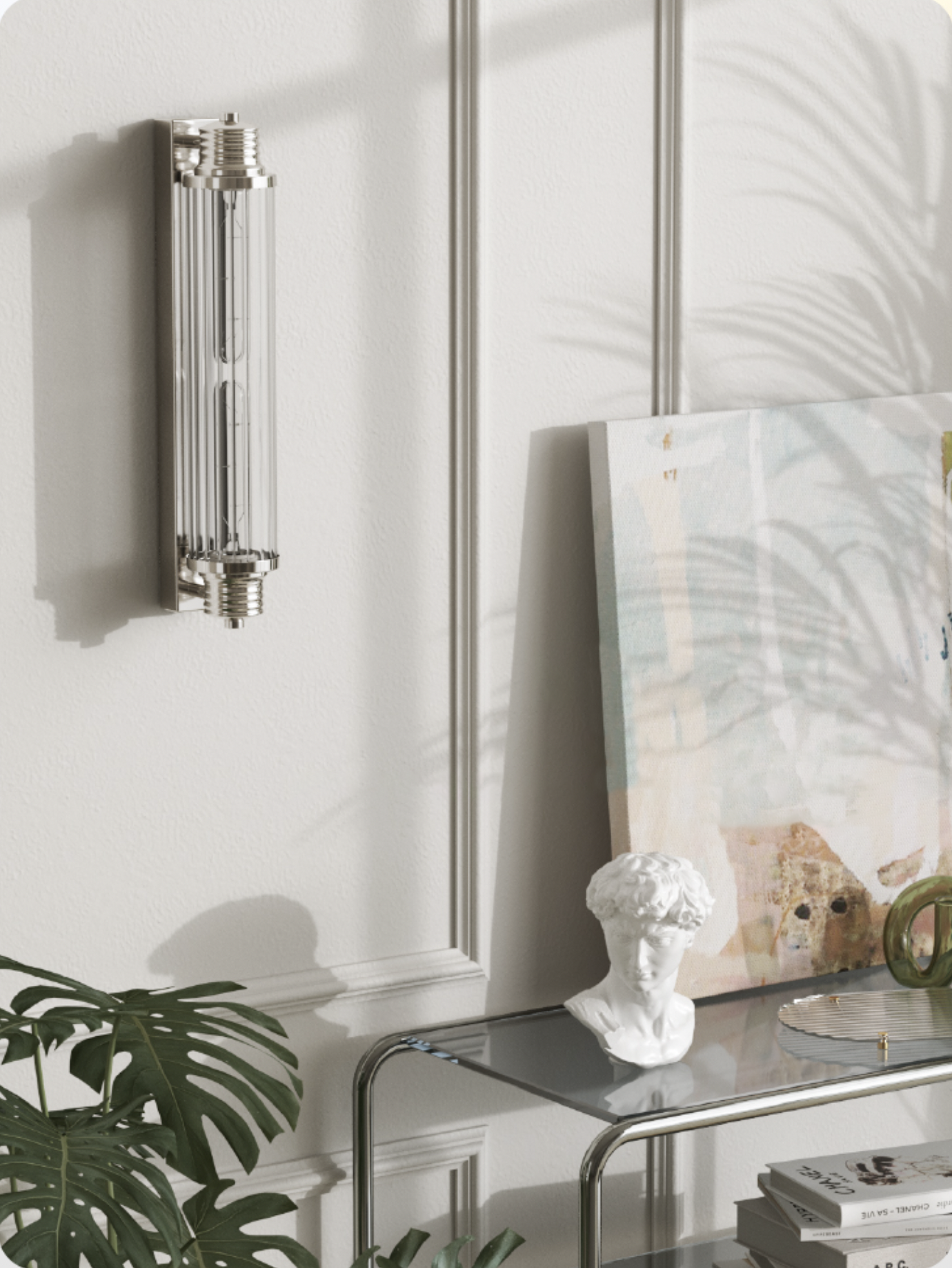 This Haberfield Art Deco Wall Light takes you back in time with its vintage mid-century modern style. The chrome frame and clear glass combine to create an elegant look, perfect for a cafe, restaurant, or wherever you need to add some retro flair! Step into the past and brighten up the future with this beautiful light.