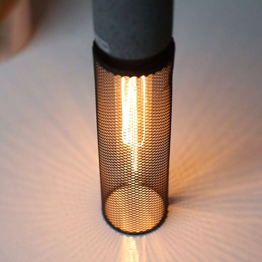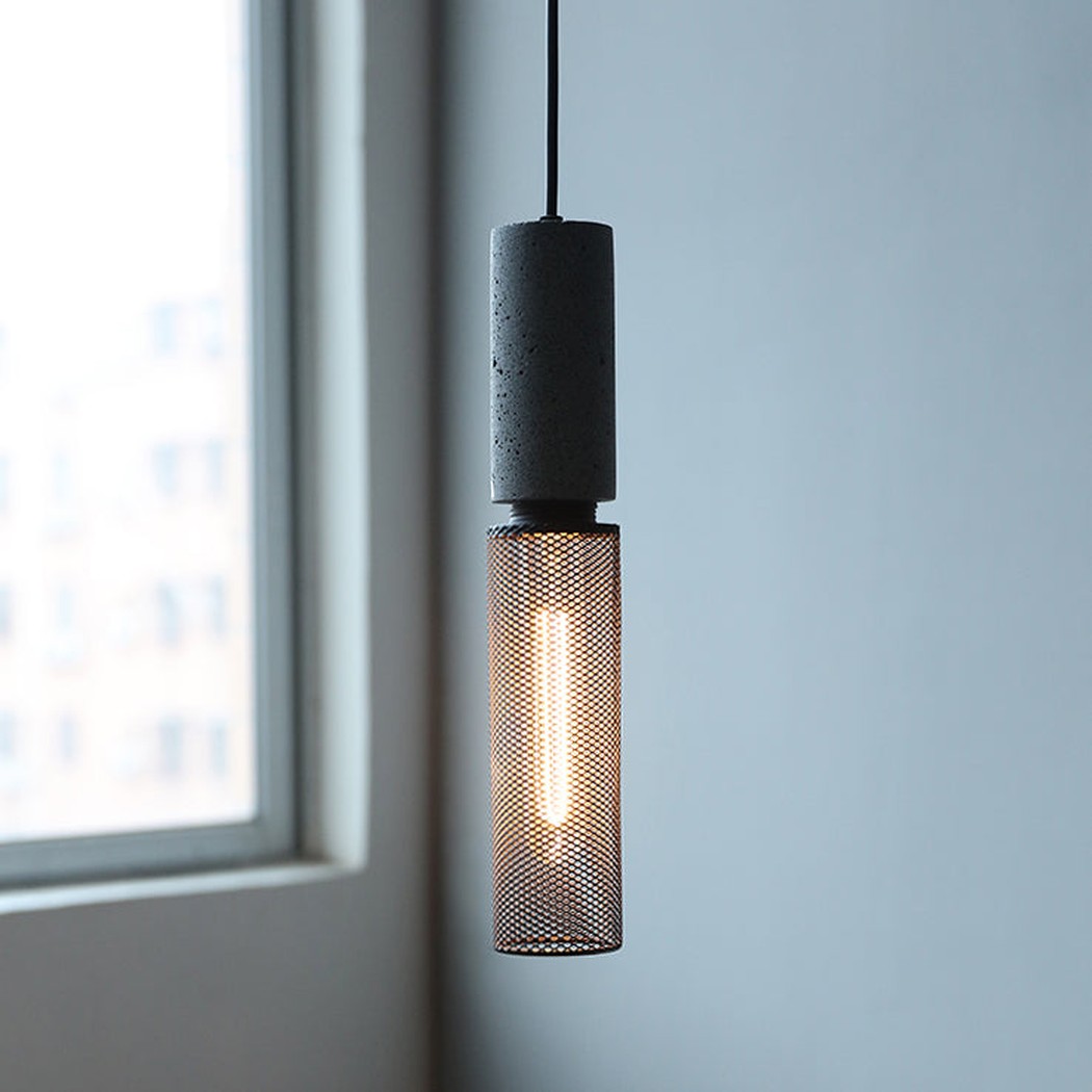 Minimalist pendant light combining concrete cement and steel cage. This industrial-inspired pendant light is the ideal complement to instantly add character to your space. Designed to house one long Edison filament bulb (19cm) inside its cage. Great for creating a warm, inviting atmosphere in restaurants, cafes, hotels or simply at home.