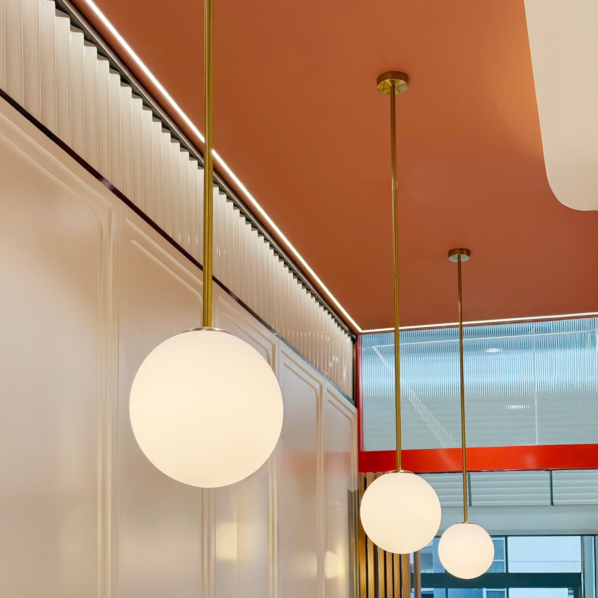 A study in quiet elegance, the Opaline suspended light brings warmth and refinement to any space. Its smooth, milky glass round globe diffuses light with a gentle glow, creating a serene atmosphere that complements both modern and classic interiors. Opaline is ideal above dining tables, kitchen islands, or in entryways—wherever soft illumination and timeless form are desired.