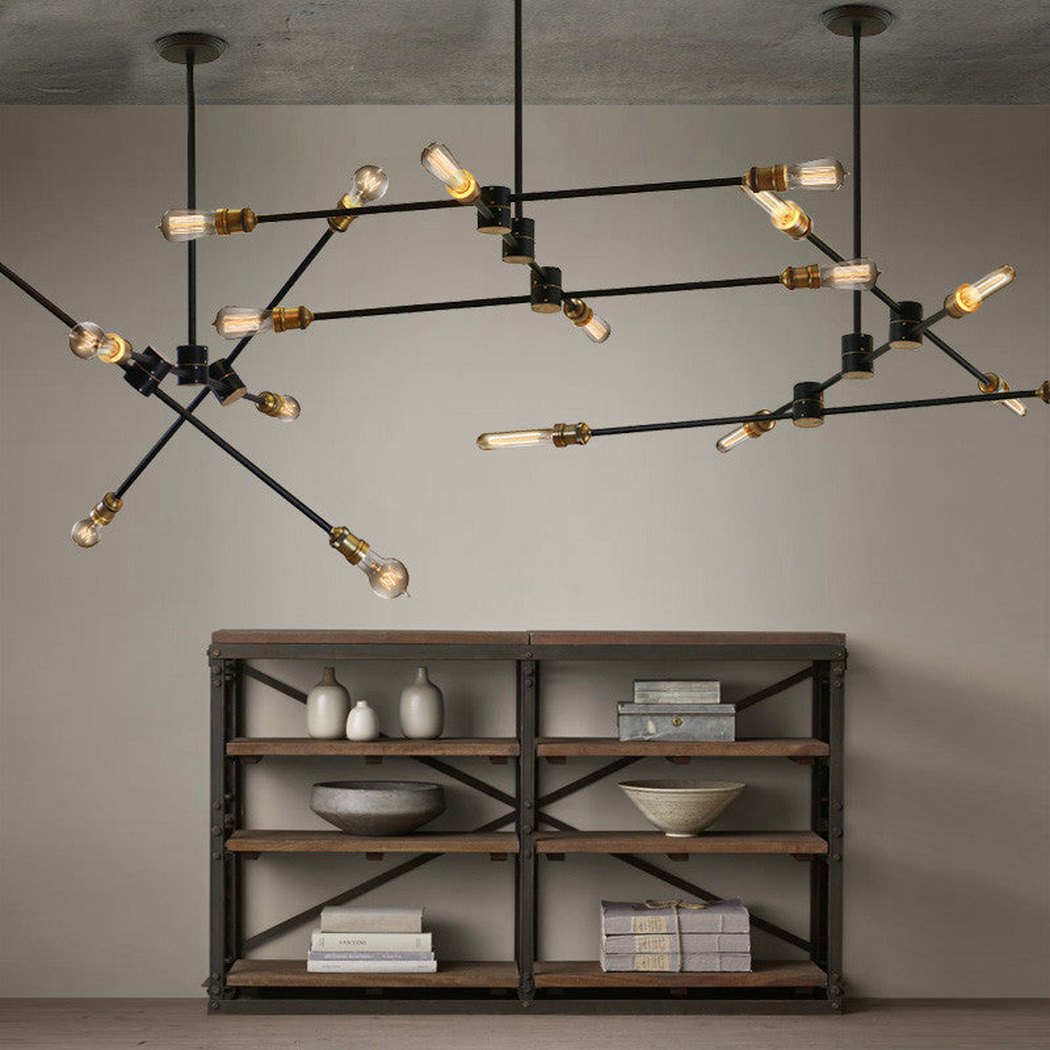 This urban chandelier offers a perfect blend of industrial and minimalistic styles. The graphical lines make the design versatile to compliment a diverse range of interiors; whether it be a loft, a minimal space, a moody lounge, or a trendy cafe.