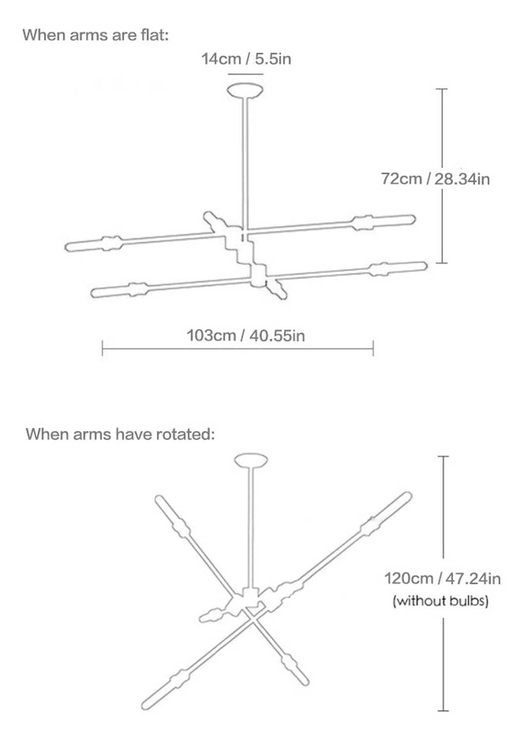 A noteworthy feature unique to this design are circular parts that allow the arms of the light can rotate to arrange to your liking. We do recommend movement only while the fixture is off with care and caution.